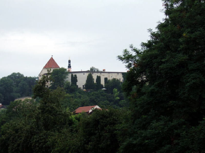 Il y avait aussi à Tittmoning une très belle église de pèlerinage, la chapelle Ponlach, officiellement Maria Brunn de Ponlach, située un peu plus haut. Tittmoning est pour ainsi dire encadré, des deux côtés, par une montagne plate, ou plutôt une colline. Sur cette colline se trouve un grand et puissant chàteau qui servit plus tard de centre aéré pour les enfants des écoles. Mais il nous intéressait moins en ce temps-là que le sanctuaire de Ponlach, tout près du château, et qui nous plaisait beaucoup. Nous sommes souvent allés avec notre mère dans cette petite église rococo, claire et aimable. Située en pleine forêt, au-dessus d'une gorge, où l'eau de la Ponlach bruissait si joliment. C'est pour moi un merveilleux souvenir, cette magnifique église et la gorge dans la forêt avec le murmure du ruisseau, nous aimions tant nous y promener.