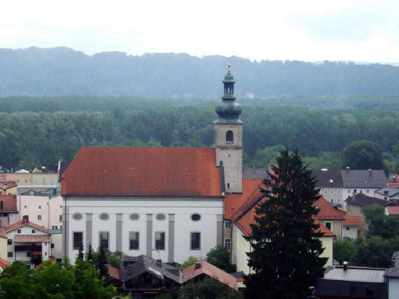 Depuis les hauteurs (qui font penser aux promenades que le futur Benoît XVI faisait avec sa mère, son frère et sa soeur), on a une vue magnifique sur la Salzach, et l'Autriche toute proche.