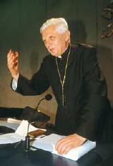 ACB: Vous savez, Eminence, que vous êtes un cardinal (candidat) très populaire: un sondage Internet vous attribue 28% d'opinions favorables, sur cinquante-sept mille réponses; juste après le cardinal Martini, qui est en tête avec 32%. Or, les spécialistes disent que dans des réponses spontanées, les opinions de «gauche» s'expriment toujours plus facilement ... Je dis cela pour l'amour de l'anecdote, mais aussi pour souligner l'écho de vos considérations. Vous donc, pour les pasteurs de demain, vous proposez un nouveau courage dans la proclamation de la foi?