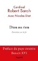 à sortir ces jours-ci: "Dieu ou rien : entretien sur la foi". Le cardinal Robert Sarah, guinéen, préfet de la Congrégation pour le Culte divin, s'entretient avec Nicolas Diat, l'auteur de "L'homme qui ne voulait pas être Pape". (20/2/2015)