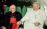 Qu'il aimait le pape, on le voit sur les photos. Je l'ai perçu en 1987, en Mai quand le le vis se blottir près de lui dans l'avion, comme un enfant qui se fait câliner par son père. Il avait demandé l'autorisation de quitter le domicile paternel, Joseph. Il était devenu grand, il avait 75 ans. Il avait arrangé une petite maison de Bavière, avec des chats, des livres et un piano, avec des fleurs sur le rebord de la fenêtre, la rivière et les bois. Jean-Paul II lui a dit: «Restez, je vous en prie, Monsieur le Cardinal."