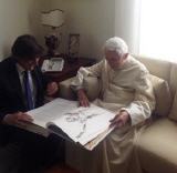 Pendant ce temps de préparation du futur synode nous avons Benoît XVI qui continue sa vie calme, priante, recevant qui il lui est agréable de rencontrer. Les photos de visiteurs nous montrent un visage souriant, reposé, un personnage attentif à celui qui vient le voir. La soutane blanche est toujours impeccable et en feuilletant le si beau livre sur Jean-Paul II qui vient de lui être offert, on retrouve les mains fines qui, dans un geste familier, accompagnent son commentaire sur l’ouvrage qu’il regarde avec son visiteur (cf. Un cadeau pour le Pape émérite). La formule de bienvenue est magnifique et montre que la tête va toujours bien. Simple, sincère, accueillante, pour entamer une rencontre, un entretien sur un sujet qui lui est cher: Jean-Paul II ; les souvenirs sont liés aux nombreuses années de collaboration intense entre le pape qui parcourait le monde et celui qui lui gardait la maison en toute amitié, toute confiance, sans messes basses, sans papotages. Du temps où il était à la CDF le cardinal disait que, devant lui, les bavardages, les critiques, n’avaient pas lieu. Cet homme discret, fidèle en amitié, était le collaborateur rêvé pour l’aider à mener l’Eglise. Cette visite a dû faire revivre bien des souvenirs liés à ce temps qui reste si précieux au pape émérite.