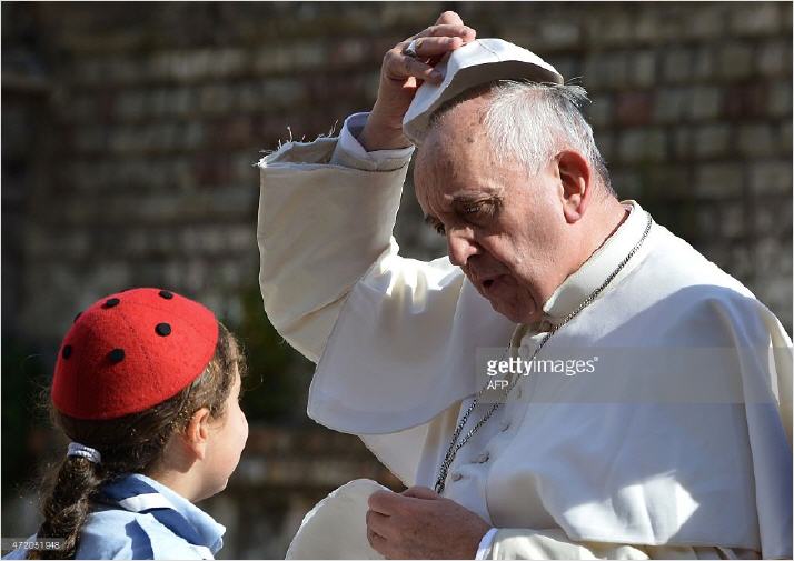 Photo ci-dessus: www.gettyimages.ie...pope-francis-exchanges-his-skullcap-with-a-girl-during-his-news-photo