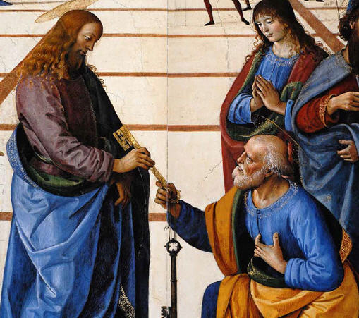>>> Ci-contre: Jésus remet les clés à Pierre - Le Pérugin, Chapelle Sixtine.