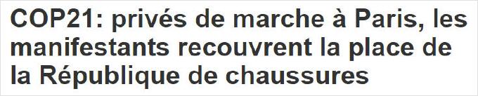 Des milliers de chaussures alignées place de la République : c’est la solution qu’ont trouvé les militants pour le climat pour contourner l’interdiction de manifester qui les a privés de leur marche pour le climat. L’action, qui devait avoir lieu ce dimanche à midi, a été interdite par le gouvernement du fait de l’état d’urgence.