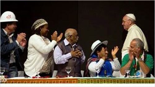 Là aussi, à écouter et applaudir François, il y avait le président "cocalero" de la Bolivie, Evo Morales, et des dizaines de groupes "altermondialiste", identifiés par le pape comme l'avant-garde d'un futur de l'humanité alternatif à l'empire transnational de l'argent et qui "transcende" les "processus logiques de la démocratie formelle." (2)