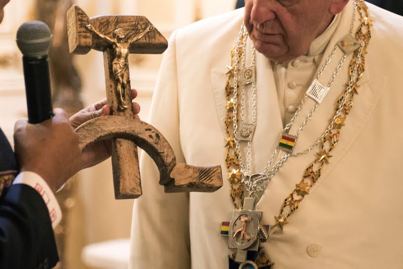 Le prêtre jésuite Xavier Albó est le propriétaire de l’étrange croix avec la faucille et le marteau dont une réplique a été donnée au Pape François mercredi par le président Morales. La croix originale, qu’ Albó possède, il en a héritée du père Espinal et elle renferme une profonde histoire personnelle.