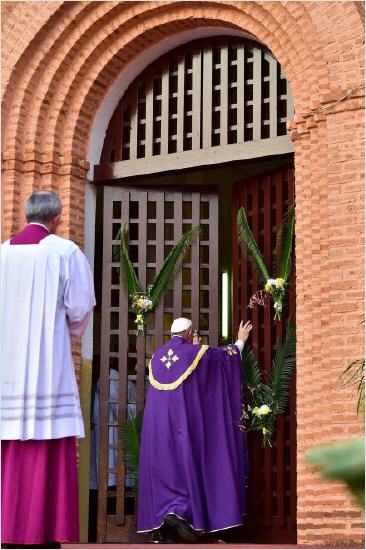 Et alors, la Porte Sainte, la Porte du salut, celle située dans la basilique Saint-Pierre, la "porta justitiae", celle par où "justi intrabunt" (Psaume 117: 19), sera désormais rétrogradée au rang de porte de service, l'une des nombreuses dont disposent les Salles sacrées, un peu moins sainte que l'autre ouverte dans la cathédrale de Bangui.