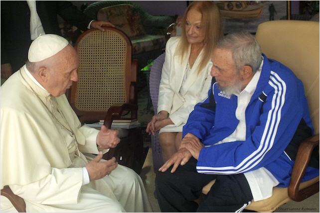 Benoît XVI, qui en 2012 était lui aussi venu avec une liste de persécutés à libérer, le reçut à la nonciature apostolique à La Havane, en signe de respect pour les fidèles opprimés depuis un demi-siècle, afin qu'il ne semblât pas que le Vicaire du Christ rendait hommage au tyran .