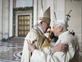 Evidemment, les médias titrent sur "l'étreinte des deux Papes"...