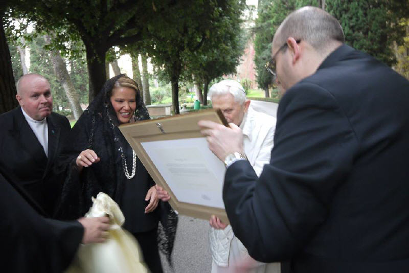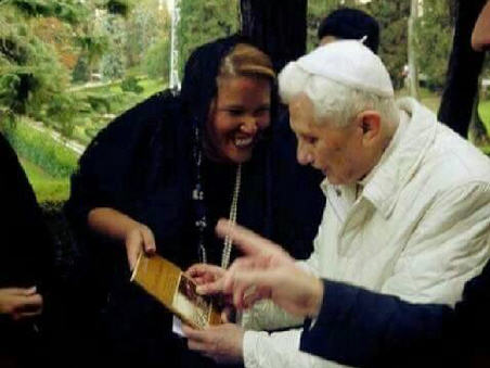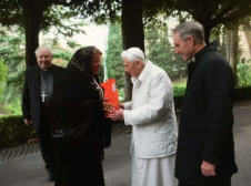 Une grâce et une joie: c'est ainsi que je résumerai la rencontre, qui a eu lieu le 19 Novembre près de la Grotte de Notre-Dame de Lourdes dans les jardins du Vatican, avec le pape Benoît. Une rencontre souhaitée et attendue depuis l'extraordinaire soirée de son élection, il y a dix ans; une rencontre inespérée, mais finalement arrivée, grâce à Dieu et grâce à Alessandra, l'administrateur de la page Facebook Benedict XVI - The Court of the Gentiles qui a organisé la visite et m'a invité.