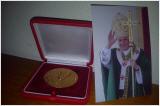 (Photo cadeaux de pape Benoît XVI, une médaille du pontificat et une image)