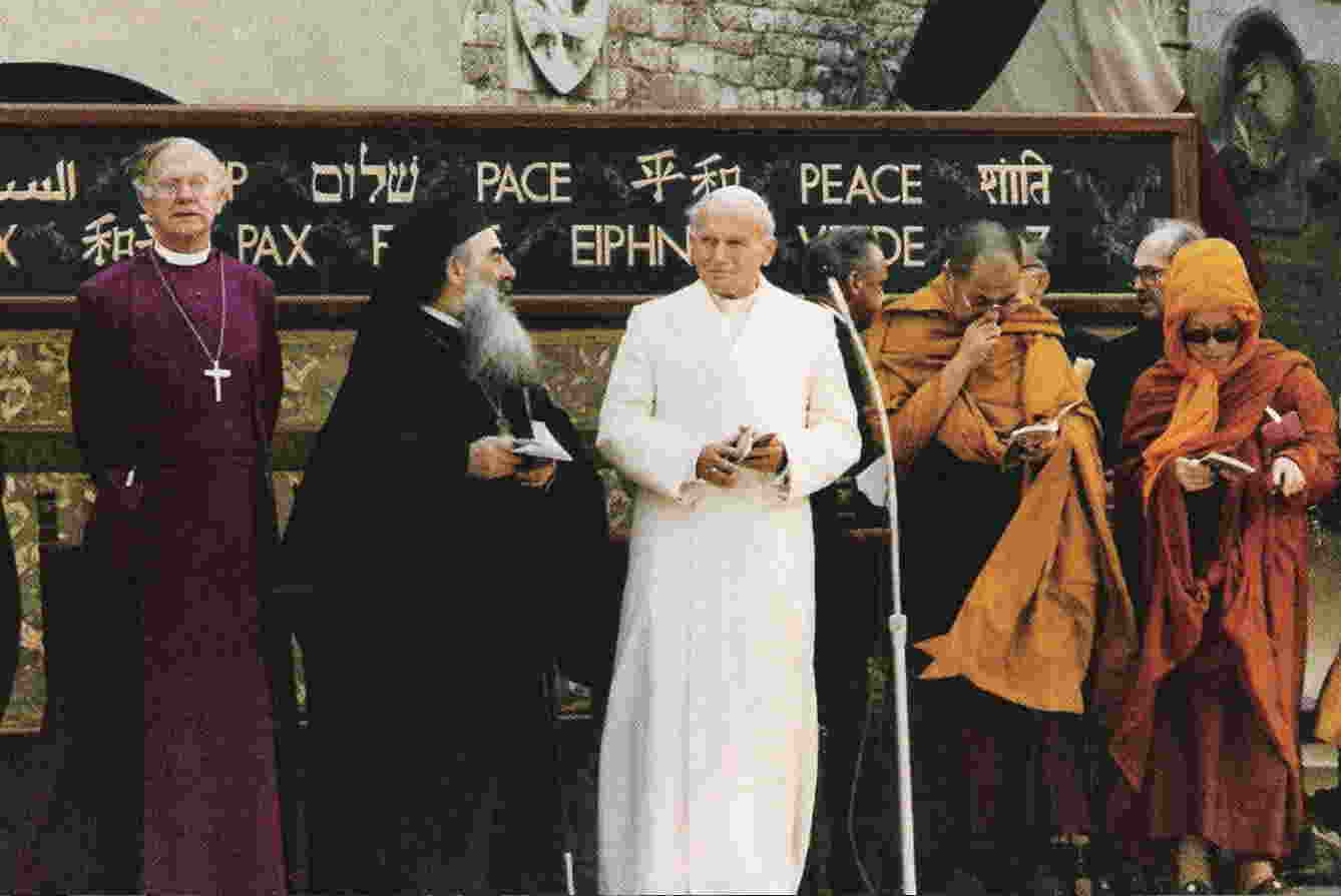 C'était très clair pour saint Jean-Paul II quand il eut l'intuition de convoquer les représentants de toutes les religions à Assise. Il l'expliqua de façon efficace deux mois plus tard, lors des voeux à la Curie romaine (22 Décembre 1986), rejetant «toute confusion et tout syncrétisme», plaçant au contraire la rencontre d'Assise dans la perspective de «l'ordre de la création»: «l'origine divine de toute la famille humaine, de chaque homme et de chaque femme, qui se reflète dans l'unité de l'image divine que chacun porte en lui (cf. Genèse,1:26), et oriente en elle-même vers une finalité commune (cf. Nostra Aetate, 1)».