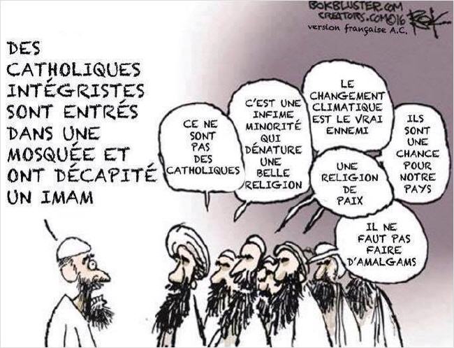 Ce sont eux les premiers fourriers de l'Islam radical dans nos pays (non pas que je les soupçonne de naïveté!). Mais parmi "ceux qui font le jeu de l'Etat islamique" il y en a d'encore plus pernicieux pour les catholiques, dans leur angélisme mielleux qui se pare de l'autorité du Magistère et on les trouve jusque dans la plus haute hiérarchie de l'Eglise, et même jusqu'au Pape qui, dans l'avion de retour de Cracovie, a affirmé: «je crois que dans presque toutes les religions, il y a toujours un petit groupe fondamentaliste. Fondamentaliste. Nous, nous en avons».