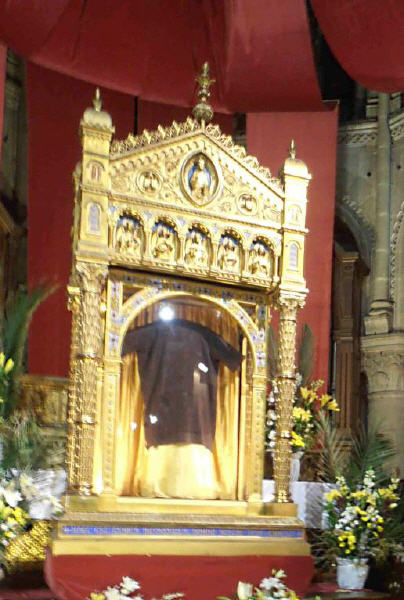 Puis ce sont les Vêpres avec une église entière qui récitent en latin et la Messe bien sûr, particulièrement impressionnante avec Dom Pateau, le prieur de l’abbaye bénédictine de Notre Dame de Fontgombault avec sa mitre et sa crosse. Et qui évoque devant la Sainte Tunique, notre côté « Saint Thomas ». Il y a tellement de pèlerins qui veulent voir la Tunique qu’ils ont été autorisés, malgré ce qui avait été prévu, à passer derrière l’autel pour voir la Tunique pendant les Vêpres et la Messe sauf au moment de l’Élévation et à la condition de le faire dans le silence le plus absolu. Une église pleine à craquer et un silence magnifique. Puis résonnent les prières latines, et haut et fort les répons des fidèles qui savent parfaitement cette langue éternelle de l’Église d’Occident, cette langue qui répond si parfaitement à un vingt et unième siècle au cosmopolitisme devenu fou et qui permet au peuple de Dieu quelle que soit son origine de prier en commun. Les pèlerins qui ont continué à circuler devant la Tunique, finalement en auront tout autant profité et l’auront peut-être compris.