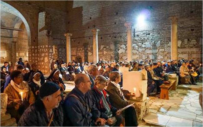 Au cours du Concile Vatican II (1962-1965), un groupe d’Evêques, principalement originaires d’Amérique latine, conduit par l’Archevêque d’Olinda et Recife, S.Exc. Mgr Helder Camara, se réunissait régulièrement pour réfléchir au thème de l’Eglise des pauvres que Saint Jean XXIII avait proposé. Le 16 novembre 1965, peu de jours avant la clôture du Concile, de nombreux Pères conciliaires – une quarantaine initialement – se rencontrèrent aux Catacombes de Sainte Domitille, à Rome, pour célébrer ensemble l’Eucharistie et signer un engagement auquel s’unirent peu après 500 autres Evêques.