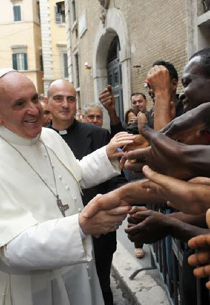 La pape "sans escorte" (insistent les médias). C'était lors de la visite au Centre Astalli, en septembre 2013.