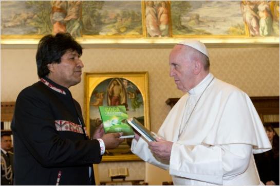 A cette occasion, il a dit que la lettre était signée par de non précisés représentants des «mouvements populaires». L'attention des médias s'est plutôt concentrée sur un don singulier de Morales au pape: trois livres sur les bienfaits pour la santé de feuilles de coca, dont Morales lui-même est producteur et fervent propagandiste.
