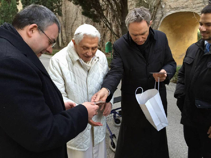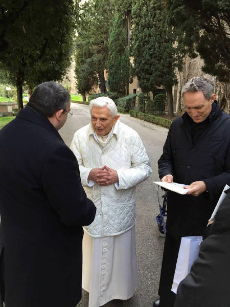 Le prêtre italien qui anime le site internet <Papaboys> vient de rencontrer Benoît XVI dans les jardins du Vatican. Photos (en attendant le compte-rendu...) (20/2/2016)