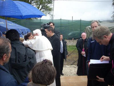 Le Pape à Onna, le 28 avril 2009, l'un des villages les plus touchés par le séisme des Abruzzes