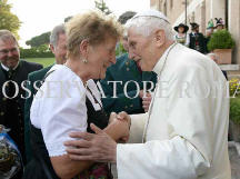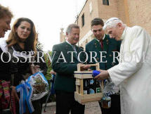 Le premier à le saluer était Karl Steininger, le président des chasseurs de montagne. En remerciant de l'accueil que Benoît XVI leur réservait, il a transmis comme cadeau un CD avec des musiques de marche en pensant aussi à son frère Georg qui n'a pas pu venir à Rome pour des raisons de santé.