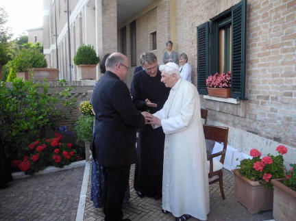 Des visiteurs (que je n'ai pas identifiés) chez le Pape émérite (1er/6/2016)