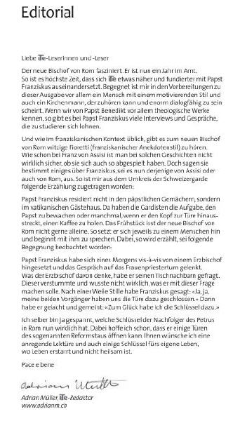 Du reste, le directeur de la revue, un religieux capucin, donc, conclut son éditorial de présentation du numéro, entièrement dédié à François, par ces mots: