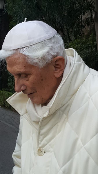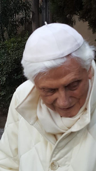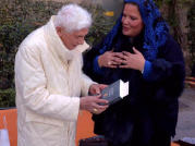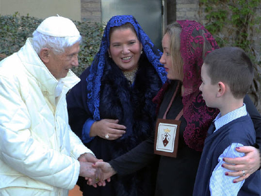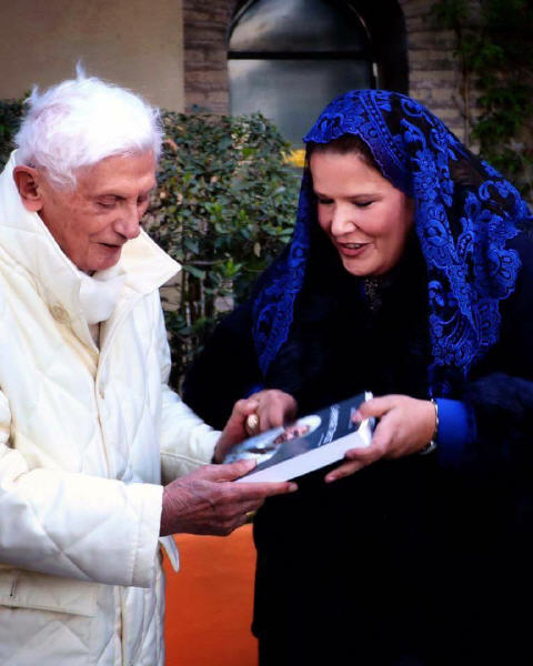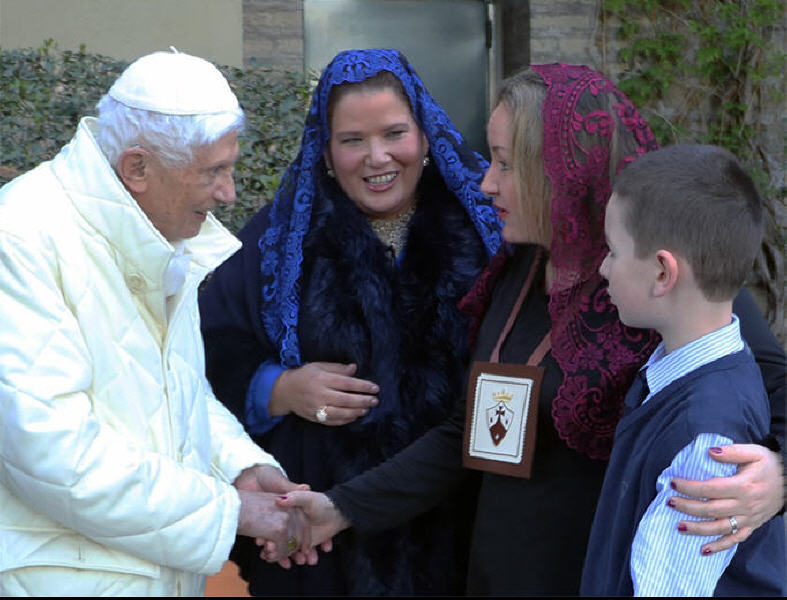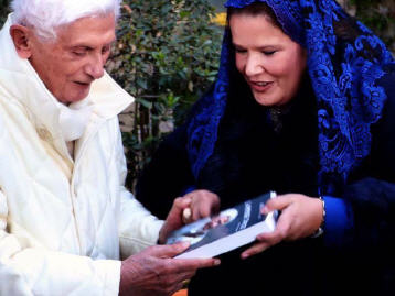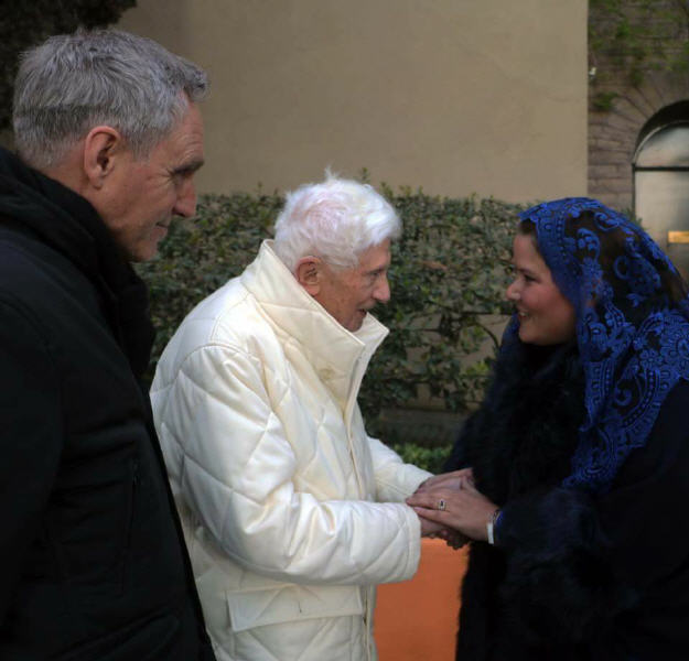 Dans la soirée du 24 avril, Benoît XVI a rencontré dans les jardins du vatican Alessandra Dee Crespo, l'administratrice de la page facebook "The Court of Gentiles" (dont sont issues les photos), venue lui présenter la version maltaise des "Dernières conversations".