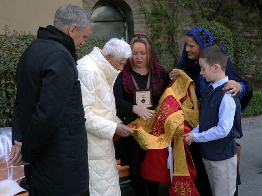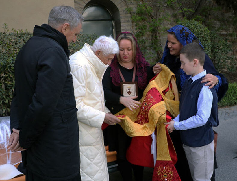 Ses visiteurs ont offert au Saint-Père comme cadeau d'anniversaire de précieux parements liturgiques:
