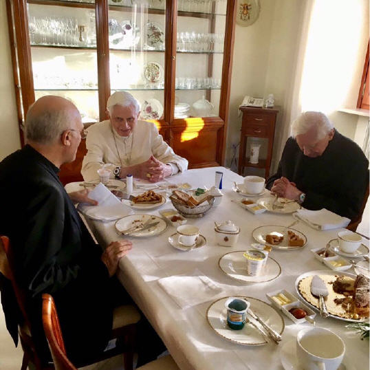 14 octobre, Benoît XVI avec Mgr Georg Ratzinger, et Mgr Alfred Xuereb, l'ex-secrétaire maltais (photo Fondation vaticane Joseph Ratzinger-Benoît XVI)
