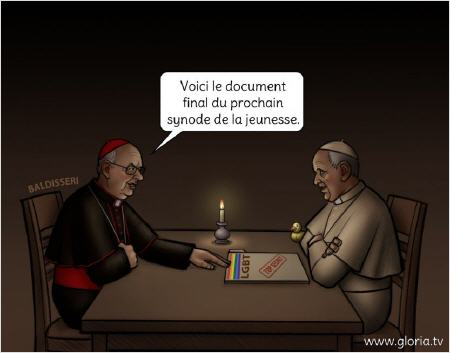 En même temps que la pression extérieure d'une coalition de groupes "LGBT", on craint que le document final ne contienne une formulation qui équivaudrait à une acceptation du mode de vie homosexuel. Cependant, la question a à peine été soulevée dans les discussions et n'a pas encore été mentionnée dans les petits groupes [cercles mineurs, ndt], mais cela n'a pas empêché de l'inclure dans les discussions lors du premier Synode sur la famille 2014. Il est notoire que l'archevêque Forte a été à l'origine d'une tentative d'introduire la question, en utilisant le rapport intermédiaire très controversé de ce synode.