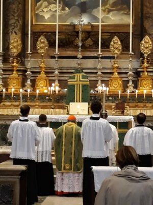 Ce matin, vers 9 heures, j'ai atterri un peu par hasard dans l'église de la Sainte Trinité des Pèlerins, près du Campo de' Fiori, et j'ai trouvé une église remplie, et à l'autel le cardinal Raymond Leo Burke. Dans son homélie, le cardinal a cité plusieurs fois un religieux, Dom Prosper Guéranger, un bénédictin français du XIXe siècle, abbé de Solesmes.