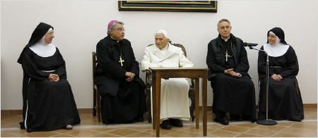 Le Pape Benoît a exprimé ainsi sa joie pour cette rencontre: «Chères sœurs, c'est une grande joie pour moi de venir ici, et d'être encore une fois avec vous dans cette atmosphère de joie spirituelle dans la foi, dans la communion, dans la joie des enfants de Dieu. Je sais que vous êtes toujours avec moi dans la prière, comme je vous suis uni».