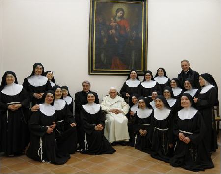 S'adressant ensuite directement à nous, le Pape Benoît XVI nous dit: «Vous, chères sœurs, êtes ici dans un monastère, pour être en chemin vers cette victoire, vers l'école de l'être à l'image de Dieu et de cela nous vous remercions tous du fond du cœur».