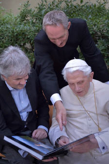 Hier 25 juillet, il a rencontré Benoît XVI lors de sa promenade habituelle dans les jardins du Vatican, pour lui offrir un album souvenir qu'on imagine magnifique. La joie du Sant-Père (souriant et en bonne forme) saute aux yeux, et fait plaisir à voir.