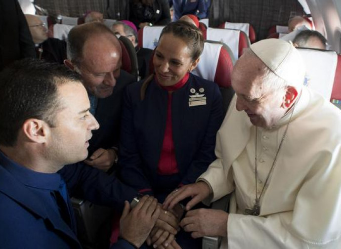 «Et alors», a raconté le nouveau marié, «il nous a demandé: "Voulez-vous que je vous marie? Vous êtes sûrs?" Nous lui avons immédiatement répondu par l'affirmative. Puis il nous a dit qu'il fallait un témoin. Alors, j'ai tout de suite été en chercher un. Ainsi a commencé une petite cérémonie, là, sur place, nous nous nous sommes pris la main. Le Pape nous a ensuite demandé s'il y avait de l'amour dans notre mariage, si nous voulions continuer ainsi pour toute notre vie. Nous lui avons dit que oui, c'est ce que nous voulions. Il y a dix ans, nous nous sommes connus justement sur un avion. Et aujourd'hui encore, c'est notre vie».