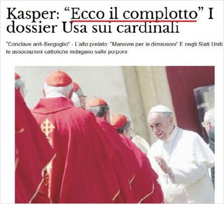 Hier, dans une interview à un quotidien, Kasper a mis en garde contre une "démission forcée", c'est-à-dire une déposition de facto du pape François. L'interview a été publiée par le journal italien de gauche Il Fatto Quotidiano (FQ). L'occasion était une interview accordée à ARD [la principale chaîne allemande], dans laquelle il parlait des opposants au Pape François au sein de l'Eglise, qui veulent forcer le chef argentin de l'Eglise à démissionner. Le mot "complot" a ensuite fait le tour du monde. Le quotidien italien Libero parlait de la "bombe de Kasper". Les opposants au Pape veulent "lâcher François pour aboutir à un nouveau conclave".