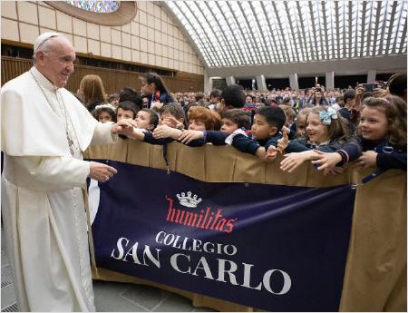 Voici les paroles Pape François le samedi 6 avril 2019 dans l'Aula Nervi (alias Salle Paul VI), recevant en audience les élèves et les professeurs du Collège San Carlo de Milan (Jorge Mario Bergoglio a répondu à quatre questions, dont celle de la Professeur Silvia Perucca sur la société multi-ethnique et l'identité). Ce qui suit est une transcription de la vidéo de Vatican News du 6 avril 2019 - durée 2'07", titre: "PAPE: NON À LA PEUR DES MIGRANTS. LES MIGRANTS, C'EST NOUS" - accompagné d'un article de synthèse de Debora Donnini avec des citations fidèles à l'original - titre: "PAPE: CELUI QUI VEND LES ARMES A SUR LA CONSCIENCE LA MORT DE NOMBREUX ENFANTS: