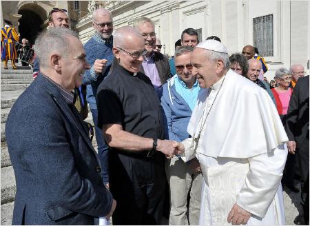 Il n'y a donc pas grand-chose à interpréter en regardant les photos dans lesquelles le Pape accueille chaleureusement les membres du Conseil Pastoral des Catholiques LGBT+ du diocèse anglais de Westminster, celui du Cardinal Vincent Nichols, pour être clair. Le communiqué, publié l'autre soir par le même Conseil Pastoral des Catholiques LGBT+ et relancé en Italie par le site catho-gay Gionata.org, prend bien soin d'expliquer que la rencontre avec le Pape a eu lieu le 6 mars dernier au terme d'un pèlerinage à Rome du groupe conduit par leur aumônier, le Père Jésuite David Stewart.