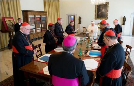 Par exemple, les cardinaux du "C9" commencèrent leurs réunions en soutanes filetées, comme prévu pour tout ecclésiastique en présence du Saint-Père (1). Je me souviens que quand j'étais étudiant à Rome, les séminaristes qui n'avaient pas de soutane allaient en emprunter une s'ils devaient être présentés au Saint-Père par leurs évêques.