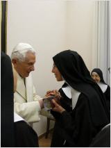 S'adressant ensuite directement à nous, le Pape Benoît XVI nous dit: «Vous, chères sœurs, êtes ici dans un monastère, pour être en chemin vers cette victoire, vers l'école de l'être à l'image de Dieu et de cela nous vous remercions tous du fond du cœur».