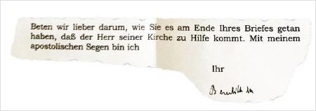 Extrait d'une lettre, avec la signature du Saint-Père