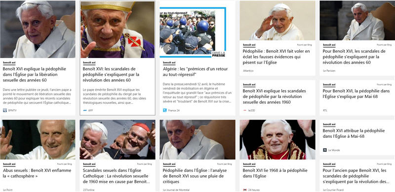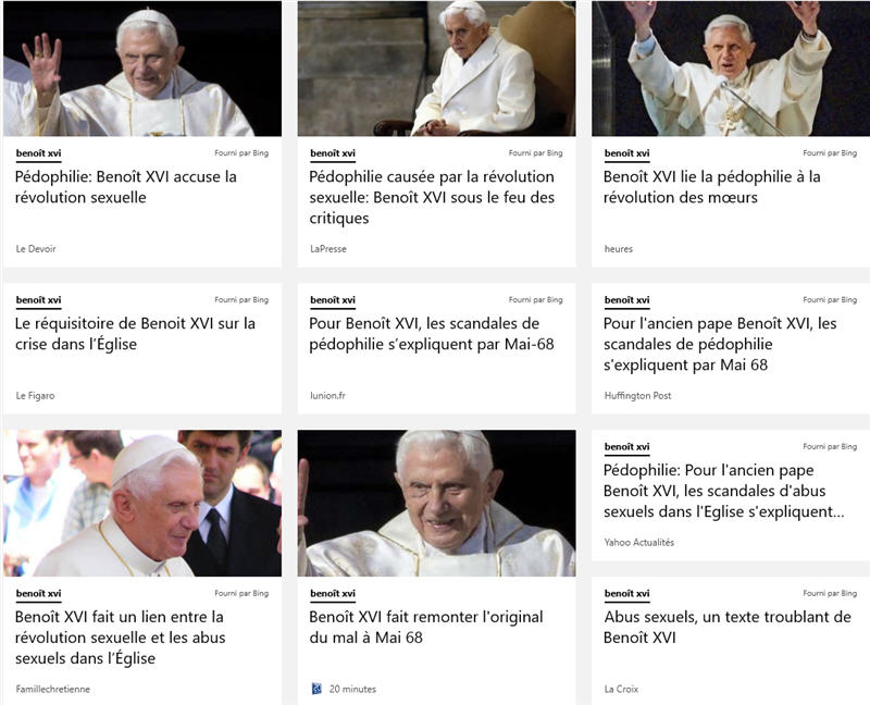 Je me suis amusée à faire une capture d'écran de la page de Micosoft Actualités, rubrique (sélectionnée par moi) <Benoît XVI>