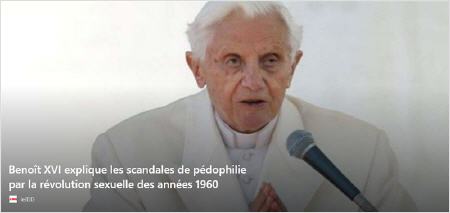 Une analyse de Benoît XVI pointant la révolution sexuelle de 1968 comme une cause des scandales de pédophilie de l’Église était vendredi torpillée par des experts [!!!] rappelant que le phénomène remonte aux premiers siècles du christianisme.