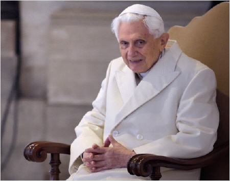 Cinq ans plus tard, il est toujours là, fragile mais pas plus que le nonagénaire lambda. Il s'appelle toujours Benoît XVI, il est toujours revêtu du blanc papal et est toujours considéré comme "Votre Sainteté".