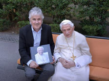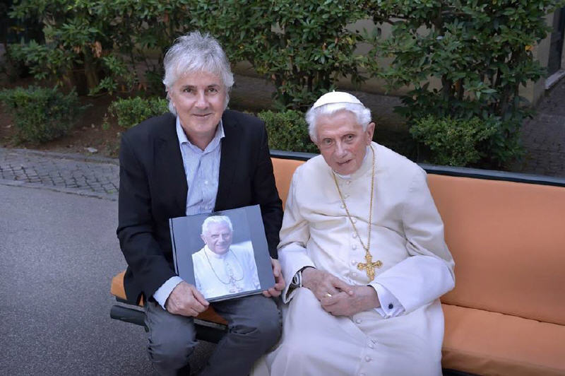 Aujourd'hui, j'ai reçu un grand don, pouvoir voir le Pape émérite Benoît XVI. J'ai suivi Benoît XVI comme photographe pendant les huit années de son pontificat, et j'ai rassemblé les photos que j'aime dans un livre. C'était bien, de pouvoir montrer mon travail au Pape.