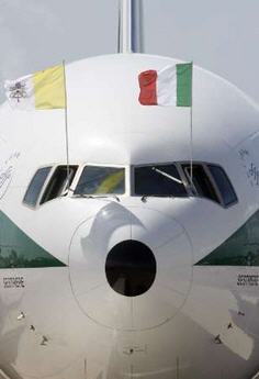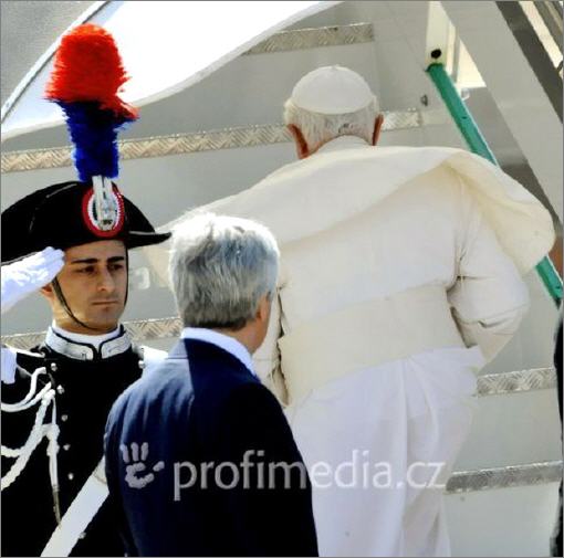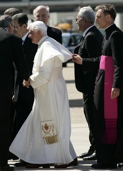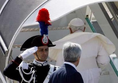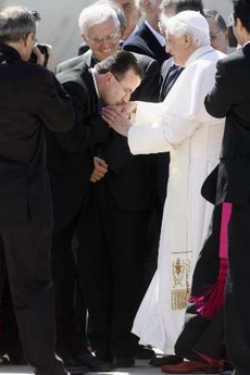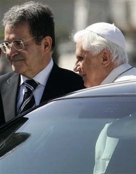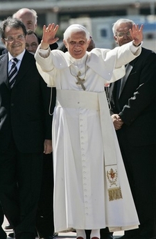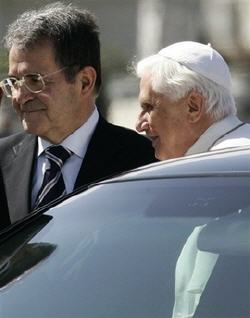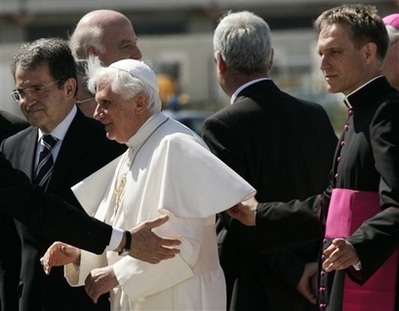 Benoît XVI a été accompagné à l'aéroport par le premier ministre sortant, Romano Prodi (15/4/208)