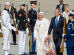 Les deux hommes ont ensuite marché sur un tapis rouge jusqu'à une plateforme installée sur la pelouse et se sont assis côte à côte alors que retentissaient l'hymne du Vatican et 21 coups de canon.