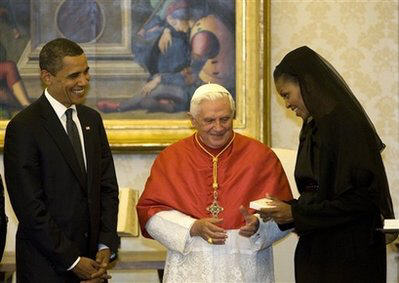Il n'y a pas si longtemps, les étoiles semblaient alignés pour le "couple dépareillé" d'une coalition entre Benoît XVI et Obama , en dépit de contrastes évidents tant sur le fond que sur le style . Le Vatican a réagi chaleureusement à l'ascension d'Obama, avec le Pape se démarquant de la coutume en envoyant un télégramme personnel félicitant Obama pour son élection "historique". Lorsque Benoît XVI se rendit en Terre Sainte en mai 2009 et qu'Obama prononça dans le même temps (ndt: pas exactement! en réalité, le discours d'Obama a été prononcé le 4 juin, soit près d'un mois après ceux du Saint-Père , cf ici http://tinyurl.com/2d5vpd9, et il était au moins la preuve que ceux qui lui avaient écrit avaient bien lu ceux du Pape, dont ils avaient donné une version "laïque" et concentrée) un important discours au Caire , il semblait y avoir une convergence frappante dans leurs visions de la détente entre l'Occident et le monde islamique . Le destin a voulu que , leur rencontre de l'année dernière est venue dans la foulée de l'encyclique sociale tant attendue de Benoît , Caritas in Veritate, et la réforme de l'éthique du système économique mondial semblait une autre zone de convergence.