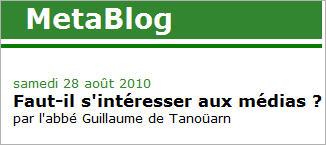 Oui, les prêtres doivent s'intéresser aux medias (et les catholiques dans leur ensemble). C'est le thème d'un remarquable article du blog "ab2t" - lu grâce au Salon Beige. (29/8/2010)